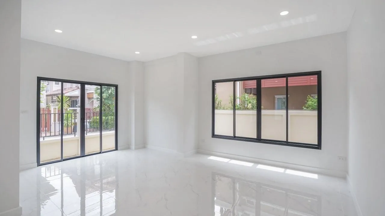 เปลี่ยนกรอบหน้าต่าง-ประตูอลูมิเนียมสีดำ และการใช้กระจกบานใหญ่เพื่อรับแสงธรรมชาติ ช่วยให้เส้นสายและดีไซน์ทันสมัย