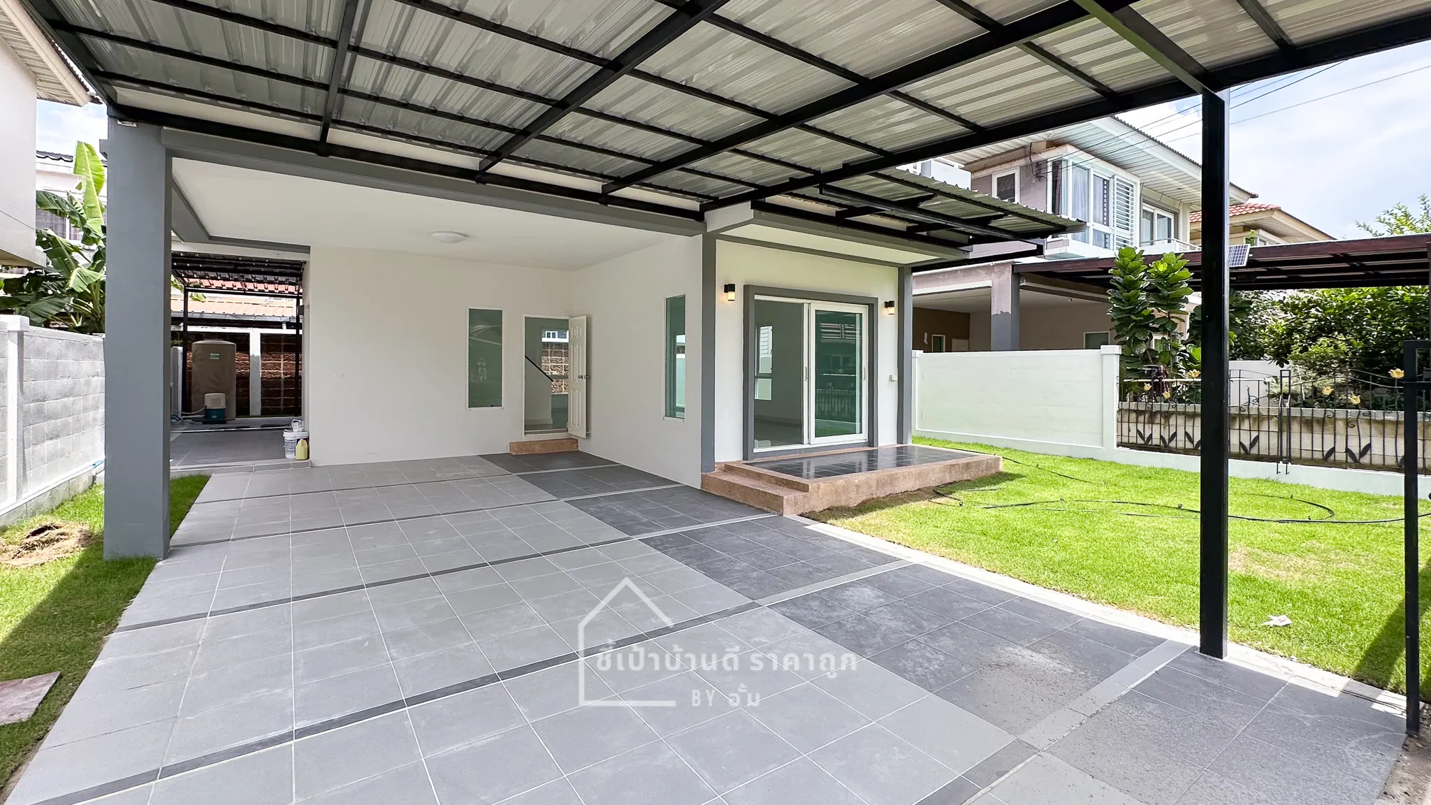 - พื้นโรงรถปูกระเบื้อง พร้อมหลังคา