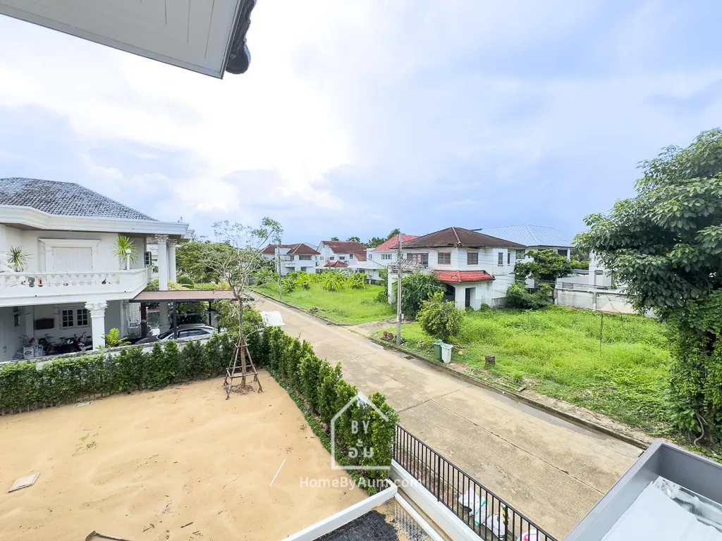 หน้าบ้านและหลังบ้านเป็นที่ดินเปล่า ทำให้บ้านเย็น รับลมได้ทุกทาง
