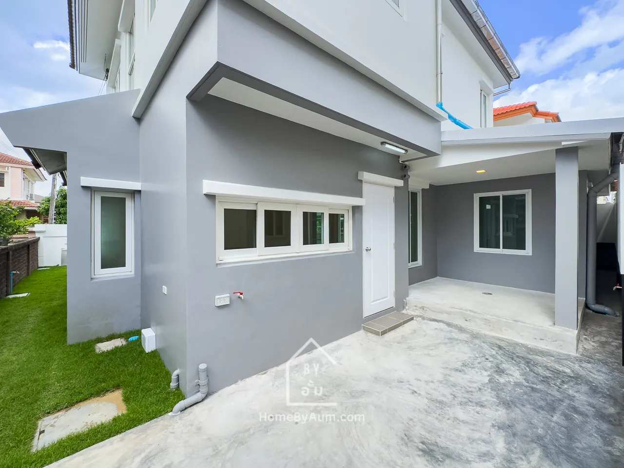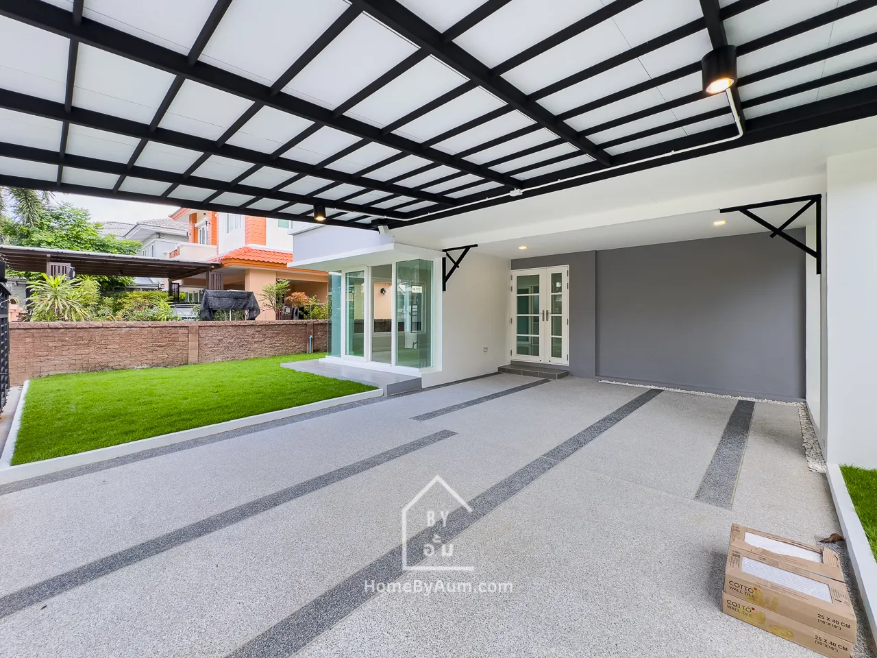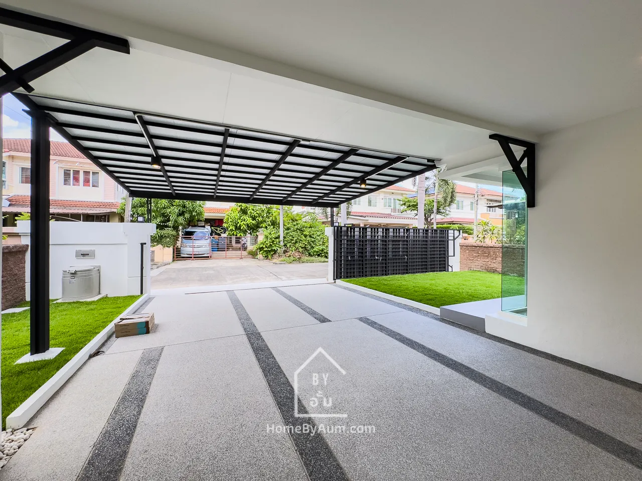 - หลังคาโรงรถ พร้อมพื้นทรายขัดสไตล์โมเดิร์น